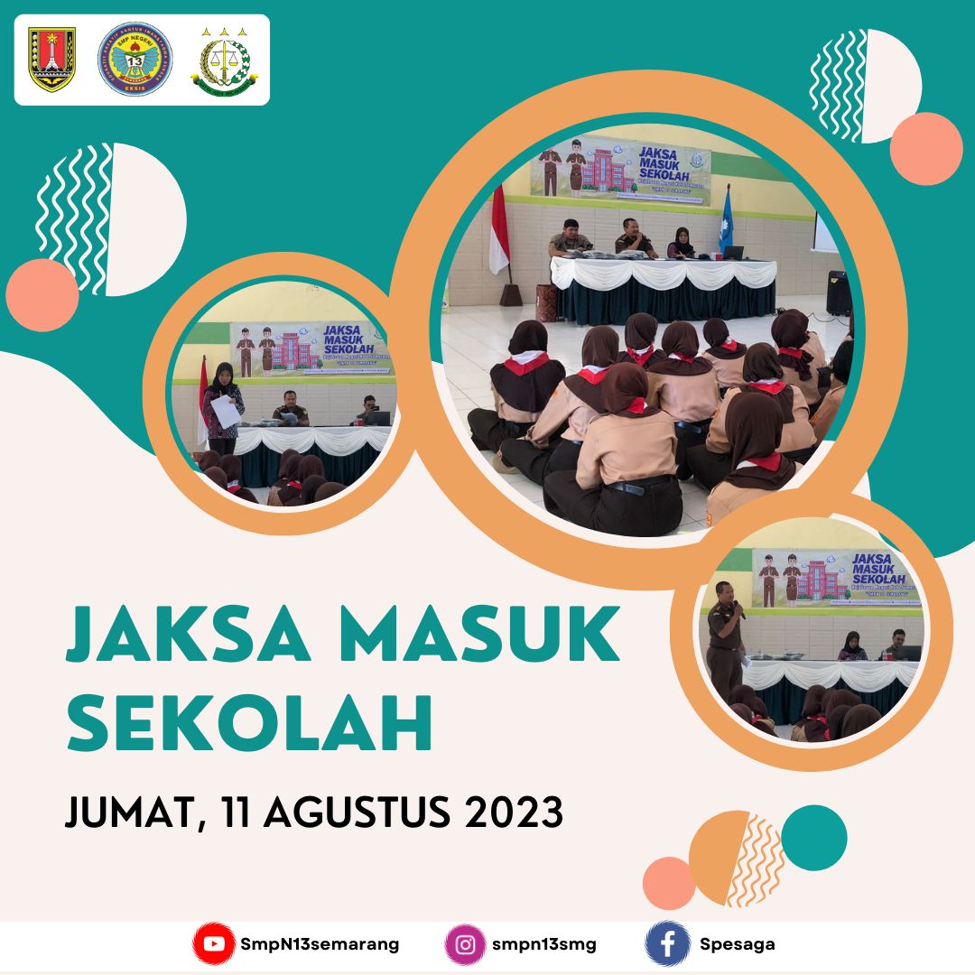 Jumat, 11 Agustus 2023 sebanyak 50 peserta didik mengikuti kegiatan bertajuk "Jaksa Masuk Sekolah". Seluruh peserta didik antusias mengikuti materi yang disampaikan oleh Bp. Muhammad Suprianto, S.H dan Ibu Nur Indah Setyoningrum, S.H., M.MH dari Kejaksaan Negeri Kota Semarang.